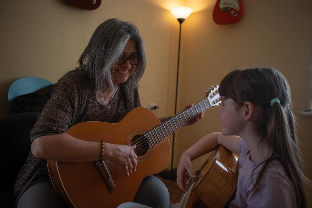 Akustikgitarrenunterricht für Kinder: Wenn wir an unsere ersten Gehversuche an der akustischen Gitarre zurückerinnern, treten Bilder von überholtem Notenmaterial, starren Tonleitern und langweiligen Volksliedern vor unser inneres Auge. Wir glauben daran, dass im speziellen Kinder sich auf die anstehende Gitarrenstunde freuen sollten und ein spielerischer Ansatz mit Fokus auf konsequenter Motivation der Schlüssel zu nachhaltigen Fortschritten ist und nur so ein Hobby entstehen kann, dass ein Leben lang erhalten bleibt.