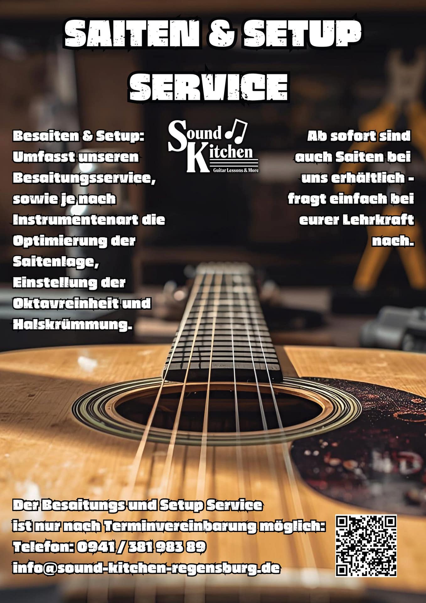 Besaiten & Setup: Umfasst unseren Besaitungsservice, sowie je nach Instrumentenart die Optimierung der Saitenlage, Einstellung der Oktavreinheit und Halskrümmung.